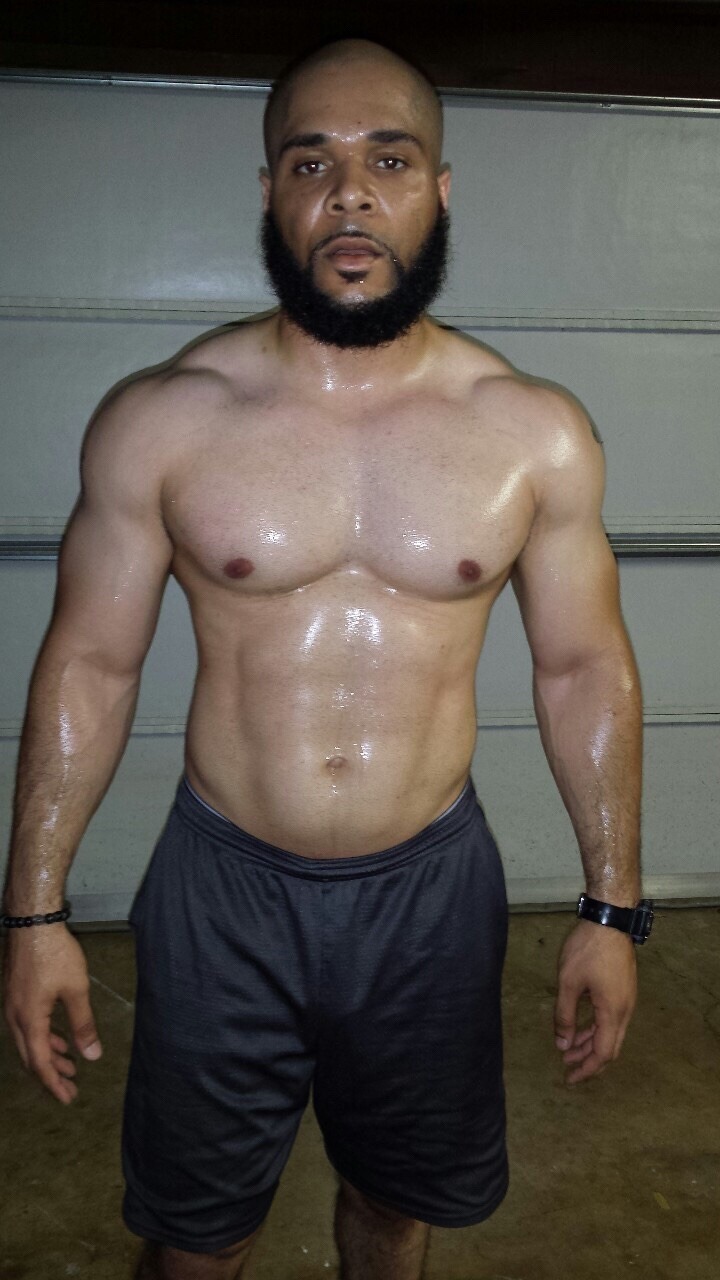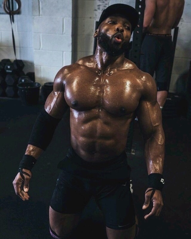 Sweat glistening all over his body!!!
