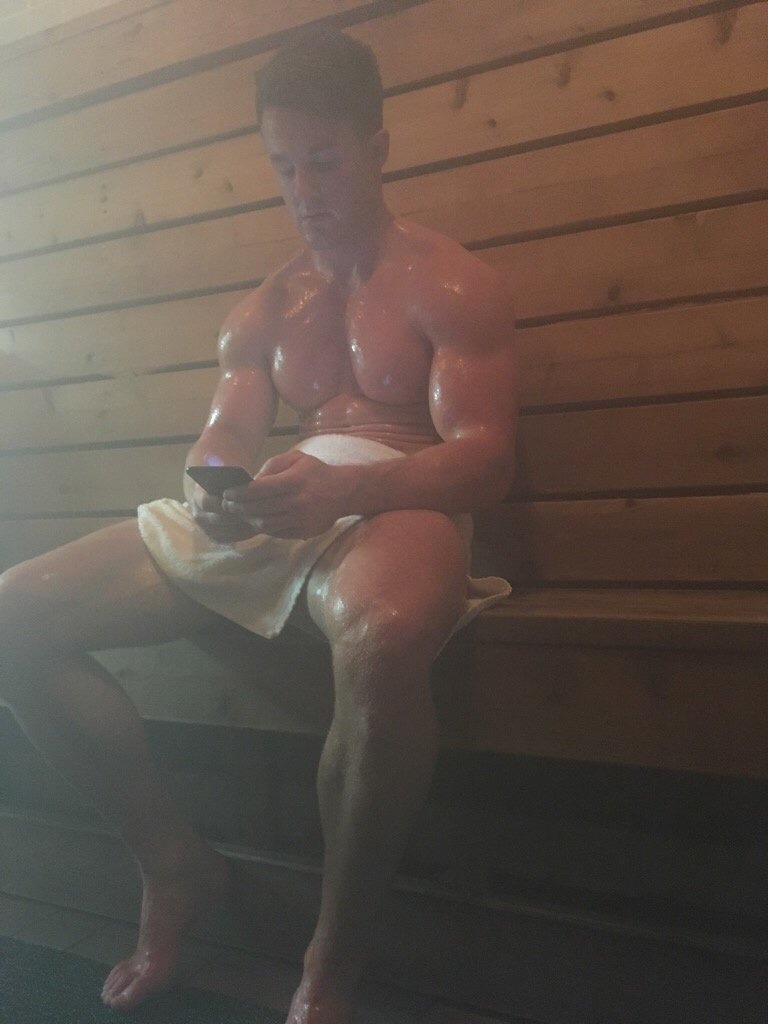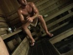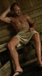 Smooth Sweaty Beefy Bulging Muscular White Toweled Sauna Gym Guy