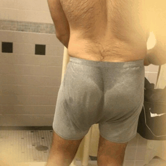 Sweaty Grey Boxers Hairy Beefy Bubble Butt Gym Guy