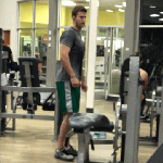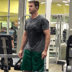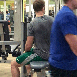 Tall Muscular Grey Tee Green Shorts Sweaty Gym Guy