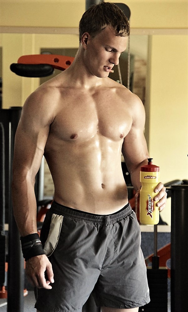 Sweaty pecs at the gym