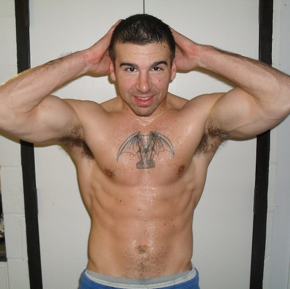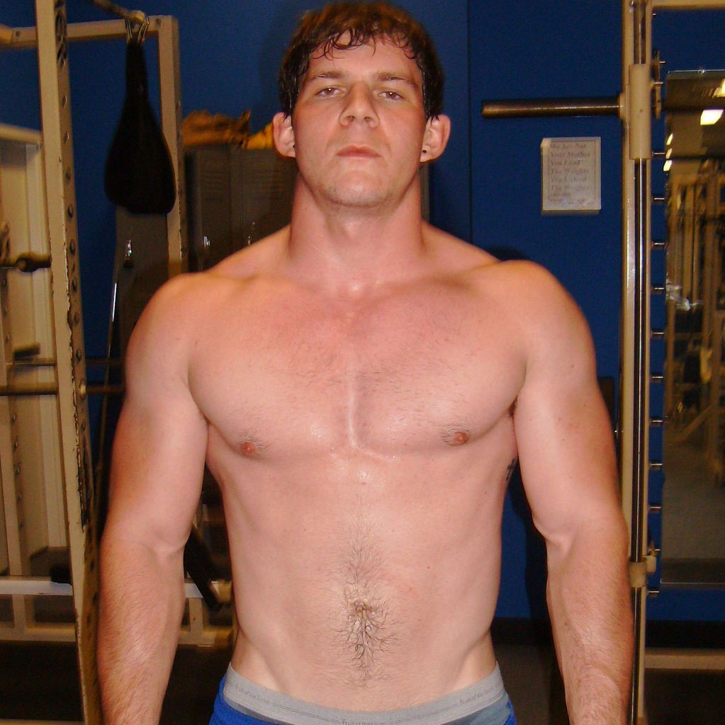 Hard, sweaty pecs at the gym