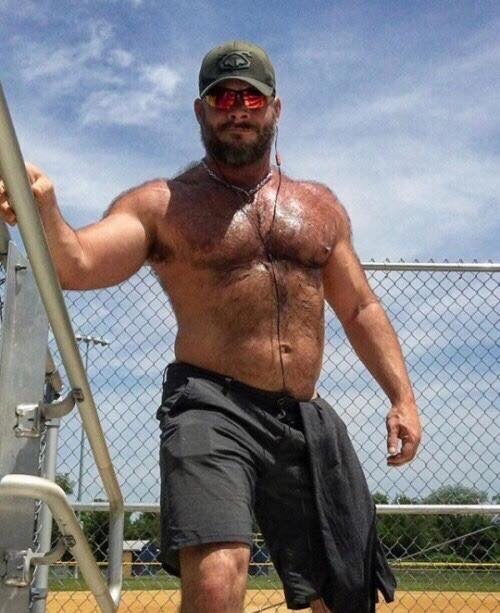 Woof! Sexy Daddy Bear. He’s so sweaty; I want to lick him all over. Pits. Feet. Balls and cock a nd of course that sweaty hairy ass. I want that sweaty ass sitting on my face.