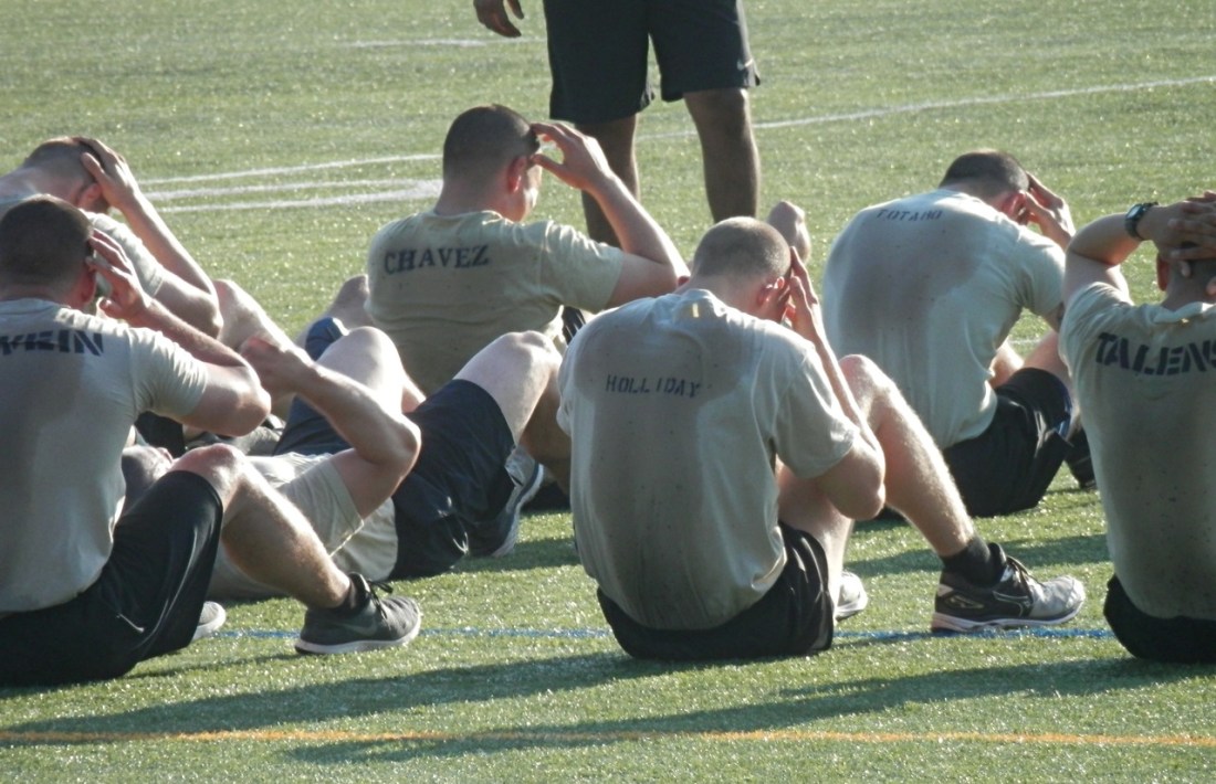 Sweaty uniforms as the Soldiers are whipped into shape.