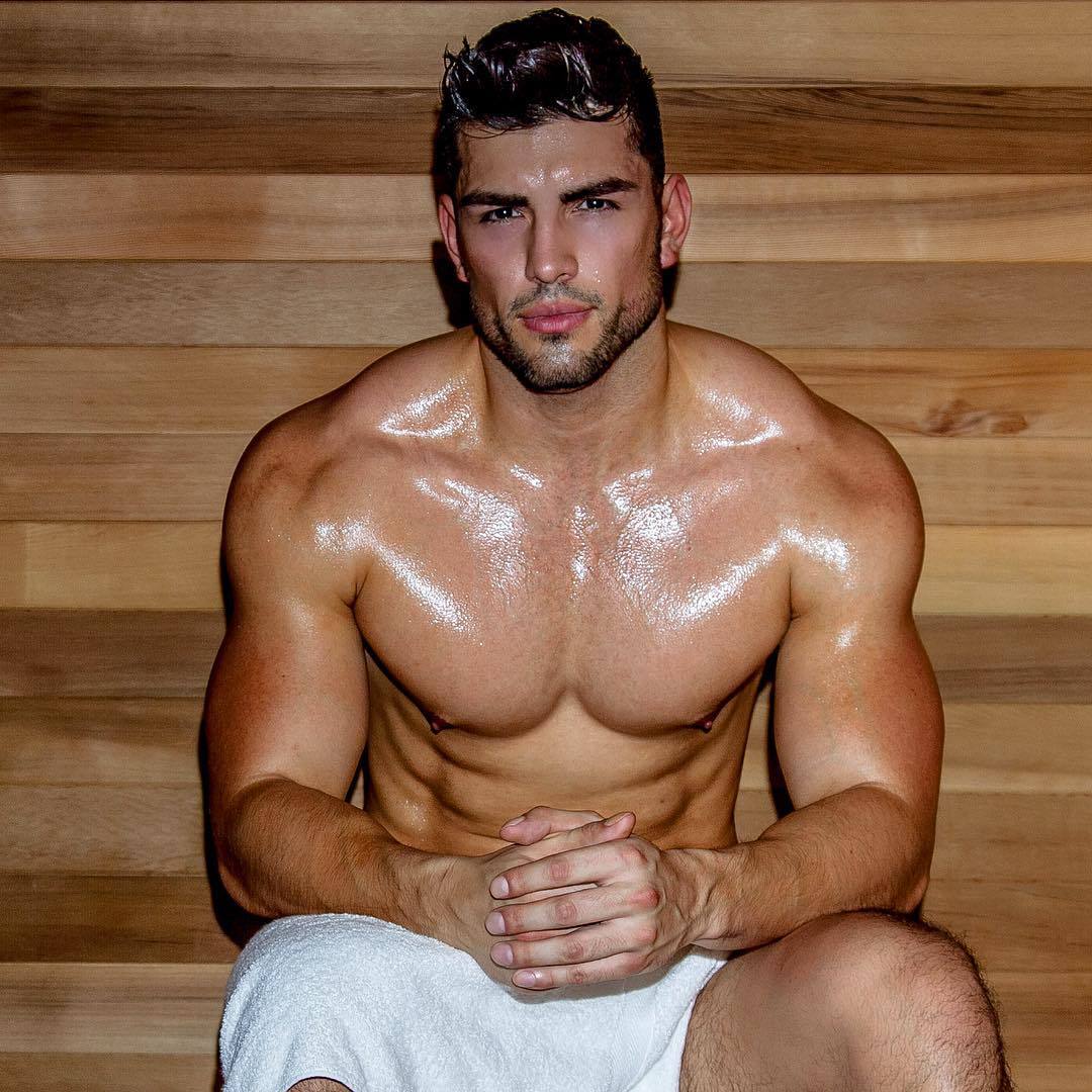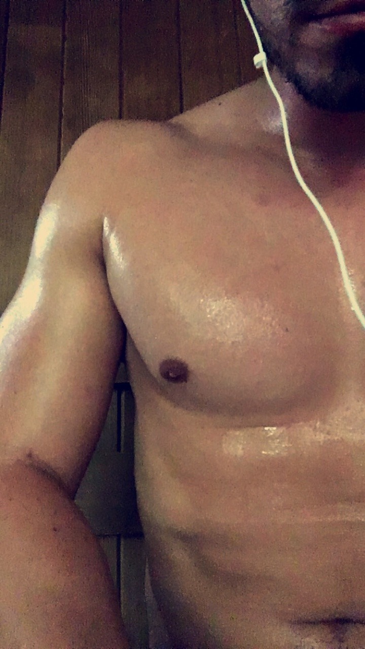 team-bonding: As the sweat rolled down his toned, smooth chest, he locked eyes with the guy across the sauna.