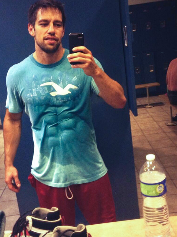 Johnny Castle after a workout. Look at how his awesome abs are outlined by his sweaty shirt!